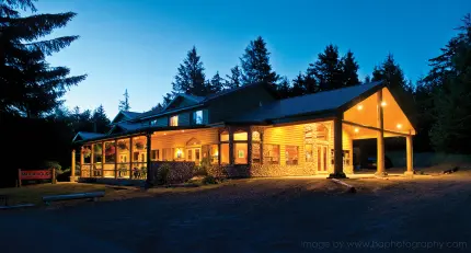 Nestled on the banks of the serene Tllaal River and surrounded by 58 acres of forest, dune and beaches, Haida House is the ideal base from which to enjoy the many nearby excursions, attractions, historical and cultural sites. This property features 10 Lodge Rooms and 12 Oceanfront Cabins and is owned by indigenous people called Haida. Onsite, the casual Haida House dining room, specialises in tide and farm-to-table cuisine and offers a variety of shareable plates, fresh seafood and chargrilled meat dishes, local seasonal vegetables and decadent house-made desserts. The licensed lounge, with a scenic river-view patio, is the perfect place to relax and enjoy an artisan cocktail, glass of award-winning BC wine, or pint of local craft beer.